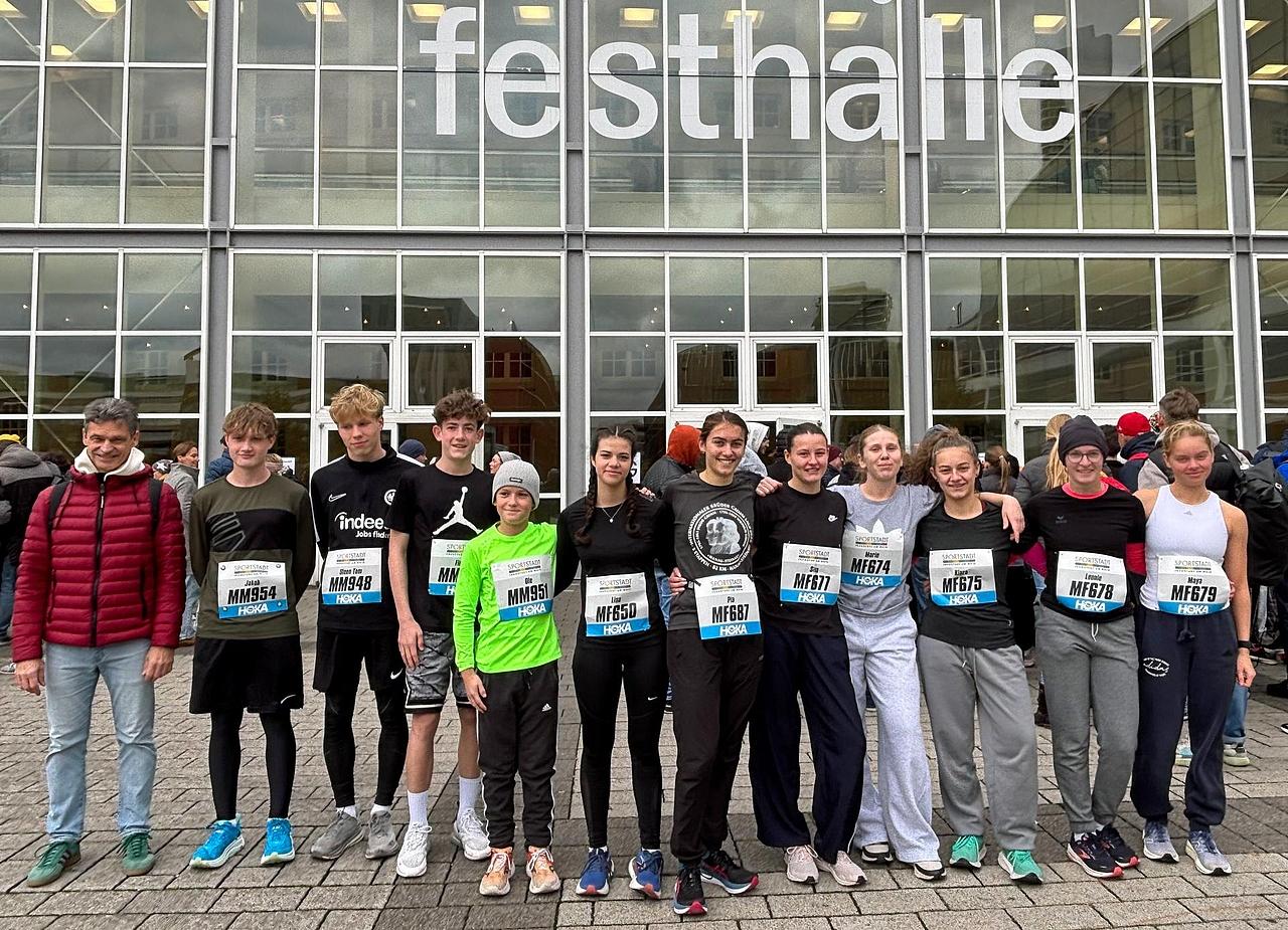 Starke Leistungen, tolle Stimmung und Teamgeist pur – die Laufgruppe der Herderschule Gießen überzeugte beim Mainova Mini-Marathon in Frankfurt mit hervorragenden Platzierungen und großem Zusammenhalt.