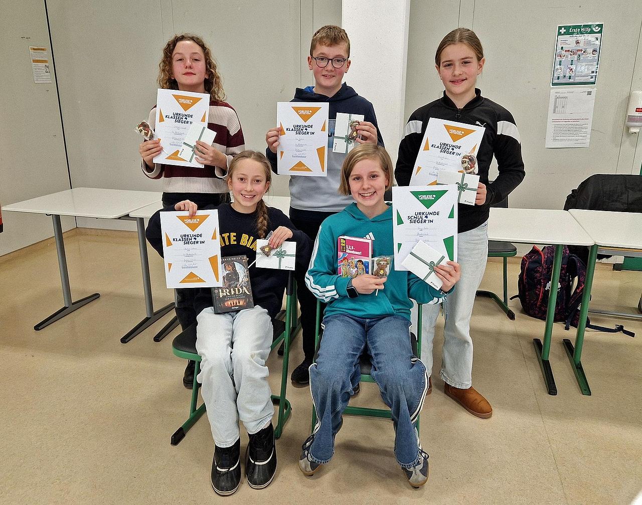 Im Vorfeld hatten klasseninterne Vorlesewettbewerbe stattgefunden. Dabei kürten die Mitschülerinnen und Mitschüler gemeinsam mit der jeweiligen Deutschlehrkraft die besten Vorleserinnen und Vorleser der Klasse, die nun beim Schulentscheid gegeneinander antraten. Am 01.12.2025 war es soweit: Marlene Vollmer, Veronika Lenz, Tim Lorenz, Lucy Bietz und Viktoria Verhoff präsentierten ihr Können vor einer Jury, die aus den Deutschlehrerinnen der sechsten Klassen sowie den Zweitplatzierten der klasseninternen Wettbewerbe bestand. Zahlreiche Mitschülerinnen und Mitschüler verfolgten die Vorträge voller Spannung.