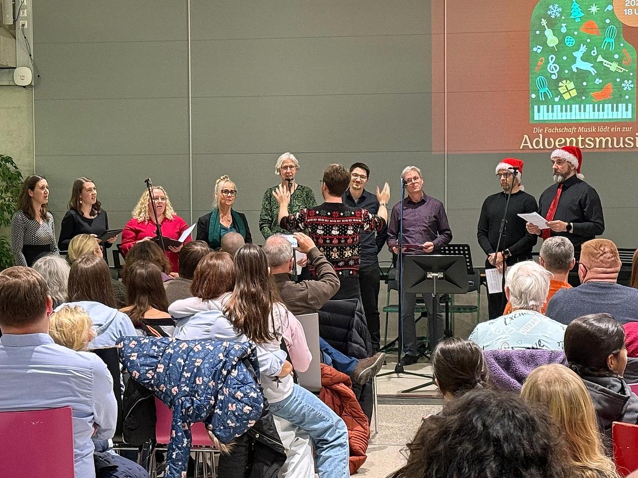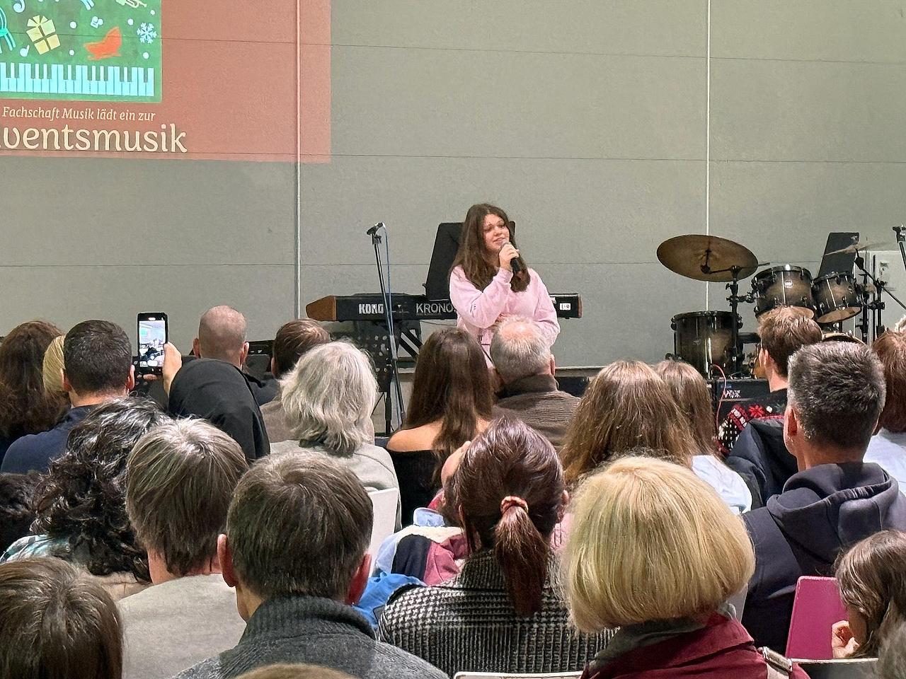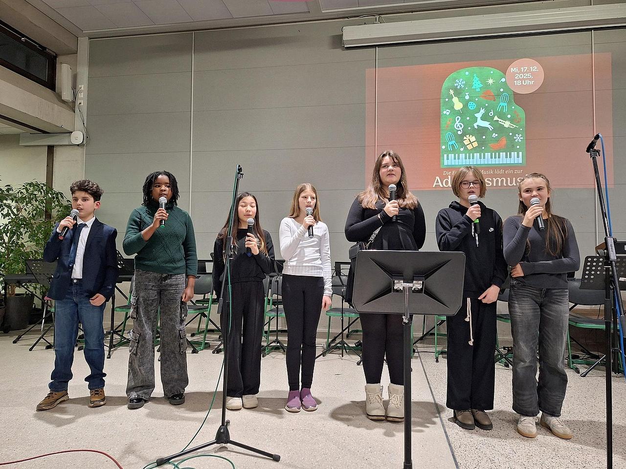 Zu einer Stunde der Besinnung lud die Fachschaft Musik der Herderschule Gießen am Mittwoch, dem 17.12.2025, in die Mensa ein. Etwa 250 Besucher lauschten der musikalischen Darbietung der Schülerschaft und des Kollegiums auf dem diesjährigen Adventskonzert.