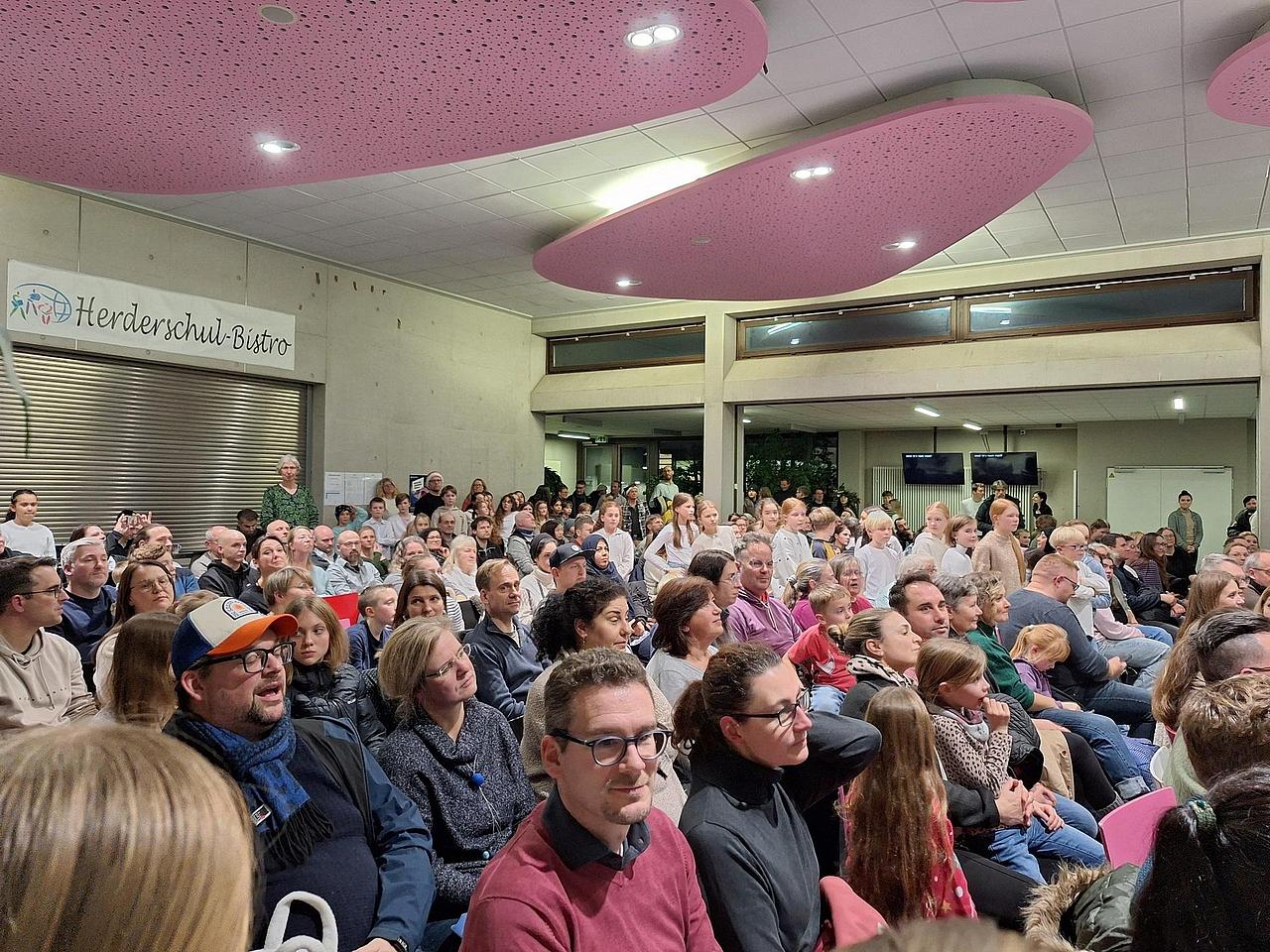 Den Abschluss bildete nach den Dankesworten von Katharina Buchert und Stefan Tross, dem Schulleiter der Herderschule, an alle Mitwirkenden ein Kanon von allen Musikern, wobei auch das Publikum eingebunden wurde. So erklang dreistimmig „Dona nobis pacem“ und führte am Ende noch einmal zu einem sehr berührenden Moment, indem die Gemeinschaft und Verbundenheit untereinander hörbar und erlebbar wurde.