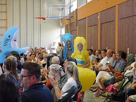 153 neue Fünftklässler versammelten sich mit ihren Familien in der Turnhalle der Herderschule, wo die Einschulungsfeier am zweiten Schultag nach den Sommerferien stattfand. Dem vorangegangen war ein Gottesdienst, der von Schulseelsorger Matthias Henkel und einem Religionskurs der 6. Klasse gestaltet wurde.