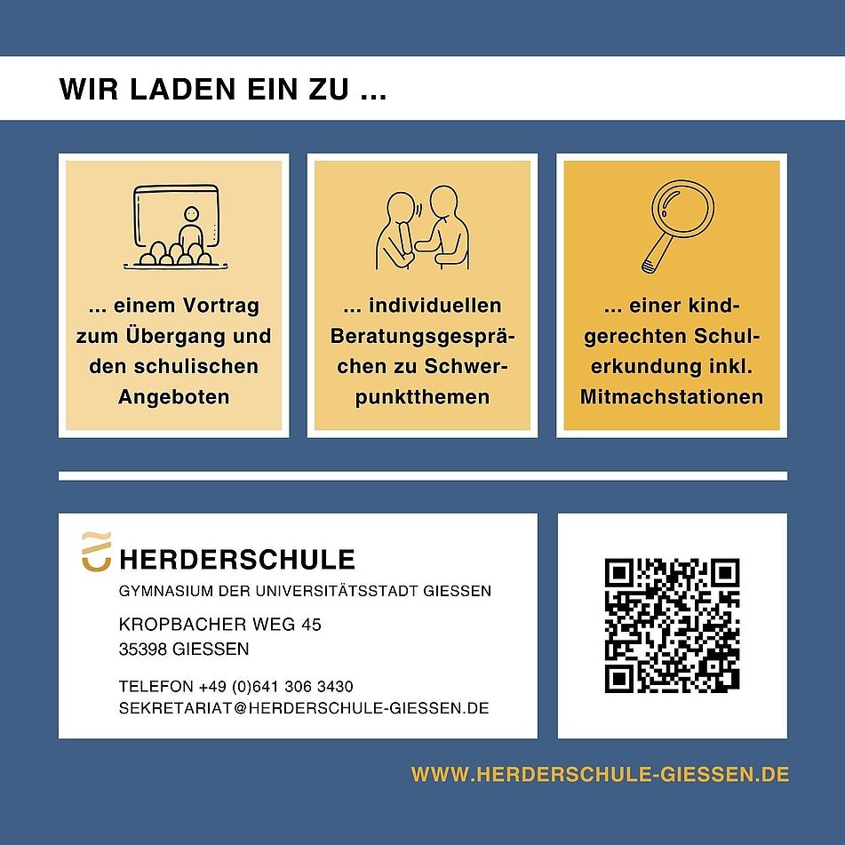 Wir freuen uns euch und Sie an einem der Tage in der Herderschule begrüßen zu können und sind auch gerne im Vorfeld der Veranstaltungen für Rückfragen ansprechbar.